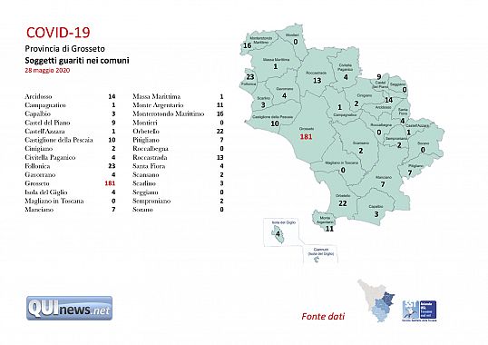 La Asl Toscana sud est comunica che nelle ultime ore sono guarite due persone, una nel Comune di Follonica l'altra a Roccastrada. In totale i guariti nel grossetano sono 181.